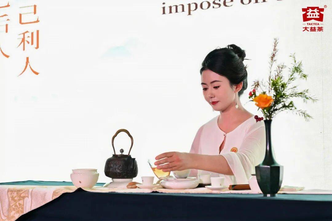 从温杯洁具、投茶注水到出汤分享,每一个动作都蕴含着“洁、静、正、雅”的大益茶道美学,茶道师们行云流水的动作,将中国传统茶艺的精妙之处完美呈现,为现场嘉宾带来了一场视觉与嗅觉的双重盛宴。
